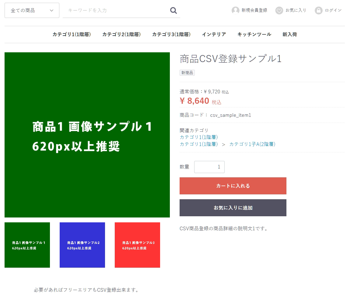 【商品CSV登録サンプル2を「カテゴリ2孫B(3階層)」(カテゴリID=18)のカテゴリに登録】